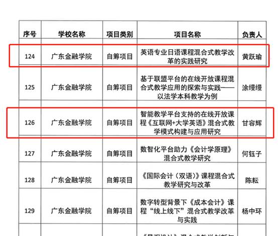 星空网彩票甘容辉老师申报的“智能教学平台支持的在线开放课程《互联网+大学英语》混合式教学模式构建与应用研究”和黄跃瑜申报的“英语专业日语课程混合式教学改革的实践研究”获得粤港澳大湾区高校在线开放课程联盟2023年教育教学研究和改革项目立项,可喜可贺!