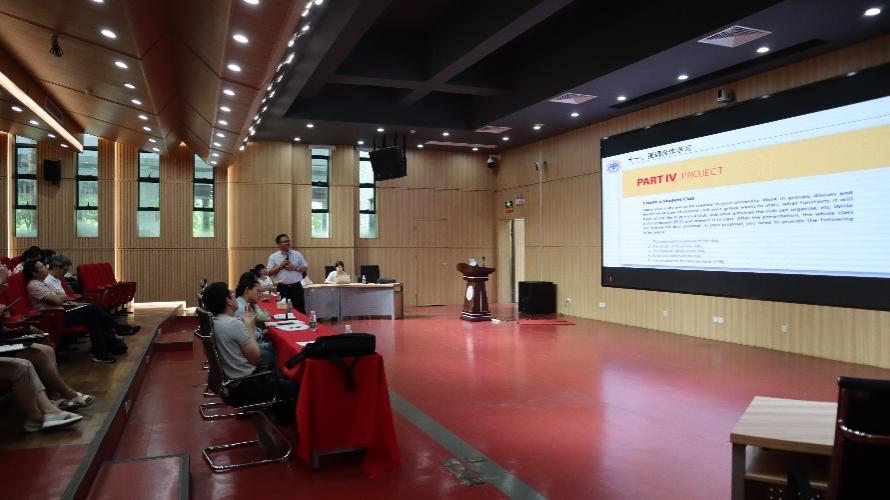 最后,刘建达教授介绍了《领航大学英语》系列教材的编写理念。大学英语教学要以形成性评价理念为理论依据,基于话题和语言活动,以“立德树人”为目标,服务“四新”,提高学生的语言交际能力,引导学生讲好中国故事、传播好中国声音,能熟练运用英语进行国际交流,利用纸质、多媒体、网络等多种教学媒介和平台,贯彻党的二十大精神和数字教育理念,培养学生扎实的语言交际能力,使学生能在日常生活、学习、工作和社会交往中恰当、有效地运用英语行各种国际交流。同时,刘建达教授还强调要紧跟时代步伐,贯彻党的二十大精神,在选文、中西对比、PPT提供的素材、汉译英、进行课堂活动和引用语料时要融入中国元素,结合中国成就、全人类发展、人类命运共同体等方面进行深入探讨。