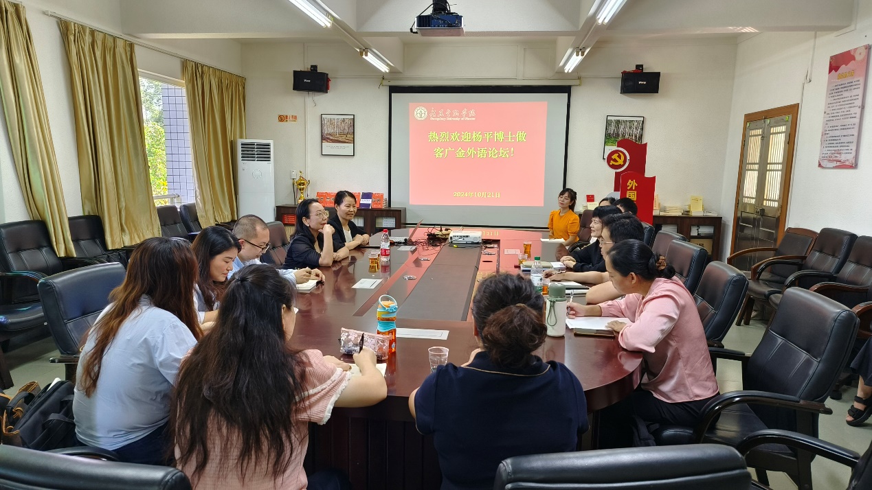 10月21日上午,《中国翻译》杂志主编、中国翻译研究院副院长杨平博士莅临我院,在外文学院的会议室2417与学院领导及部分教师进行了主题为“漫谈研究论文选题及其它”的精彩座谈。