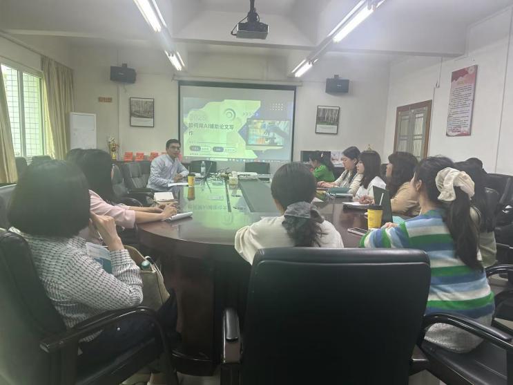 论坛伊始,陈树坤副院长作了题为“AI辅助学术写作”的专题报告。介绍了“米塔搜索”、“IMA”和“KIMI”等智能工具在文献检索、研究综述和论文写作中的应用,并通过实例演示了如何利用这些工具提升学术写作效率。报告引发了与会教师的浓厚兴趣,大家就AI工具的学术伦理边界等问题展开了讨论。
