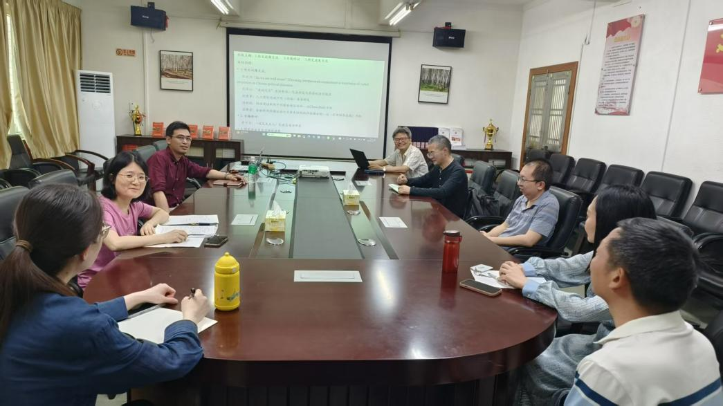 陈树坤副院长以政治文献翻译中投射语言的评价意义为议题,探讨投射的分布以及不同投射等级对评价意义的影响。刘传江副教授探讨了“课程思政”英译的标准化路径,系统梳理了国内课程思政术语的英译现状。