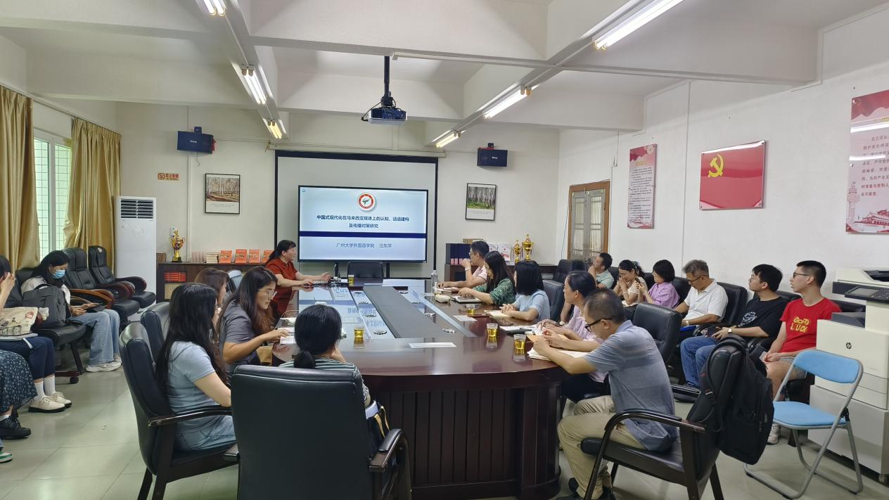 9月28日下午,广金外语论坛第73期在星空网彩票会议室举行。广州大学汪东萍教授应邀作“马来西亚媒体视域下中国式现代化的话语建构”专题讲座,星空网彩票科研骨干教师和翻译硕士研究生到场聆听。