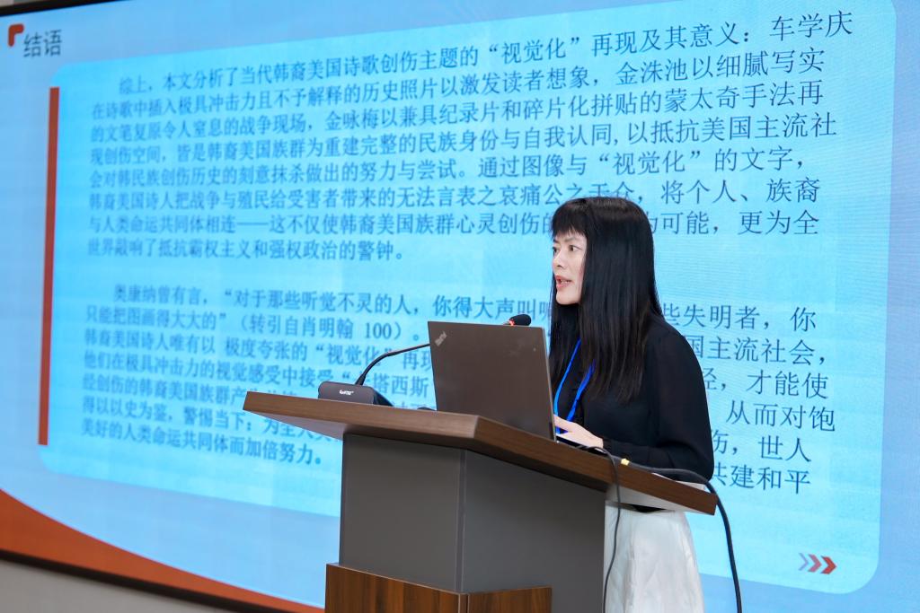 涂兵兰院长在“外语文学与翻译研究”分论坛中担任主持人,她隆重介绍了论坛主讲人蒲若茜教授及其报告主题。涂院长强调,蒲教授对知识的不断追求和创新精神是值得所有教育工作者学习的典范。在数字化时代背景下,如何将数智技术与外语文学的研究、翻译和教学有机结合,已成为外语文学教育领域的一项紧迫任务。