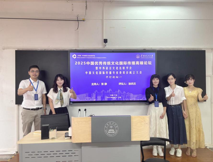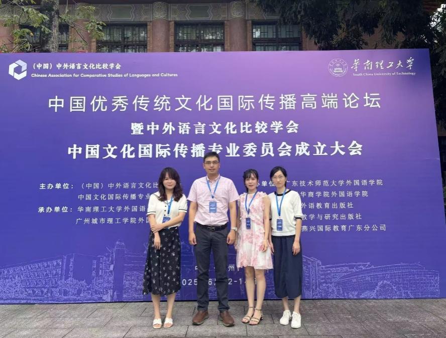 6月13日至14日,星空彩票旧版app下载涂兵兰院长带领陈树坤、唐姗、余薇、于雪莹等4位博士参加由中外语言文化比较学会中国文化国际传播专业委员会主办,华南理工大学外国语学院、广东城市理工学院外国语学院承办的“2025中国优秀传统文化国际传播高端论坛”。本次论坛聚焦中国优秀传统文化的国际传播,旨在深入探讨翻译策略、创新传播、人工智能赋能等前沿话题,为提升中国文化软实力和国际话语权贡献力量。