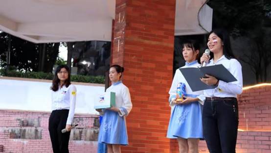 经过了一个多小时的激烈比赛,最终由一号参展商斩获一等奖,二号参展商取得二等奖,八号参展商获得三等奖,五号参展商获得最受欢迎参展商奖,一号参展商获得最具人气摊位奖,同时,二号采购商获得最佳采购商奖,曾涛同学获得最佳翻译奖。最后,由黄中习院长、黄晓莉书记为选手颁奖。至此,第十三届模拟广交会圆满落幕。