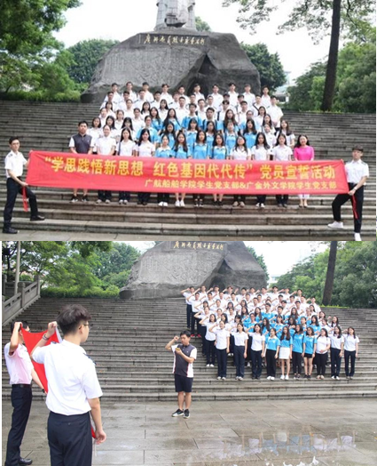 为了深入学习贯彻习近平新时代中国特色社会主义思想和党的十九大精神,在中国共产党成立97周年来临之际,我校星空网彩票学生党支部同广航船舶与海洋工程学院学生党支部于6月24日上午在广州起义烈士陵园举行“学思践悟新思想,红色基因代代传”预备党员宣誓仪式。