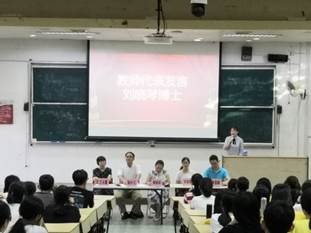 会议第二项议程为教师代表发言,刘晓琴博士以全英发言与新生们见面,推心置腹地与同学们分享了关于英语学习的真知灼见,诠释了何为英语学习和为何学习英语两大方面,同时,借着中华人民共和国成立七十周年的东风,鼓舞英语学子们勤奋好学、放眼全球,成为祖国建设的中流砥柱。