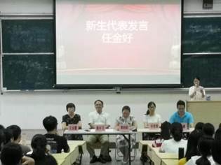 接下来会议第三项议程,任金好同学代表全体新生发言,道出了众多新生学子们对大学,对未来的心声。