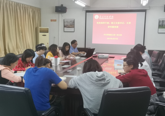 为把学习贯彻习近平新时代中国特色社会主义思想不断引向深入,外文学院教工第一党支部和第二党支部于4月27日下午召开组织生活会,开展党员领导干部、基层党组织书记、支委讲专题党课研讨活动。学院党总支为每位教工党员购买了《习近平新时代中国特色社会主义思想学习问答》(以下简称《问答》)。
