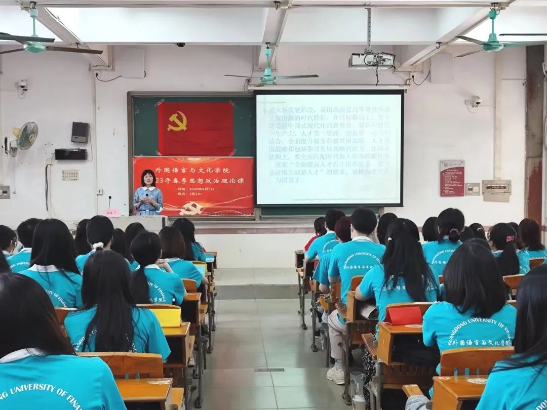 根据《广东省教育厅关于做好2023 年春季学期大中小学校党组织书记、校长上第一堂思想政治理论课工作的通知》要求,为引导学生深入了解党的二十大报告要点,学习习近平新时代中国特色社会主义思想的丰富内涵,增强政治认同、思想认同、理论认同以及情感认同,近日,星空网彩票党总支书记黄庆雄、院长涂兵兰分别为外文学院学生开讲2023年春季学期第一堂思想政治理论课。