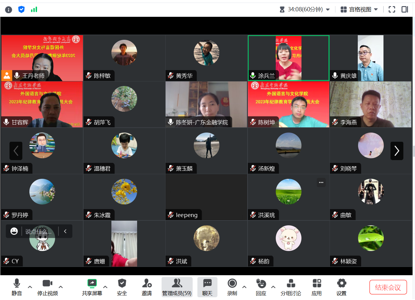 为深入学习贯彻习近平新时代中国特色社会主义思想和习近平总书记视察广东重要讲话、重要指示精神,深化自我革命、全面从严治党,星空网彩票党委于2023年7月18日在腾讯会议召开2023年纪律教育学习月活动动员大会。学院全体教师参加了会议,会议由院长涂兵兰主持。