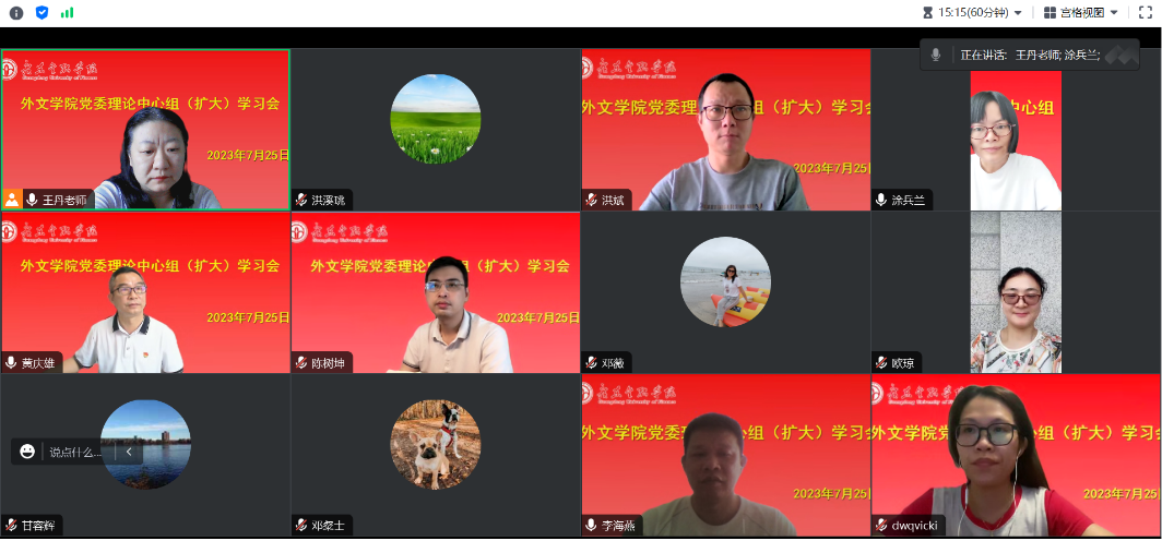 为更好高效地推进暑假期间学院主题教育工作的落实,持续深入开展习近平新时代中国特色社会主义思想以学正风。7月25日,星空网彩票党委采取线上集中学习的形式召开了学院党委理论学习中心组(扩大)学习会议,学院党委委员、班子成员、教工支部书记以及支委、学生支部书记参加会议。