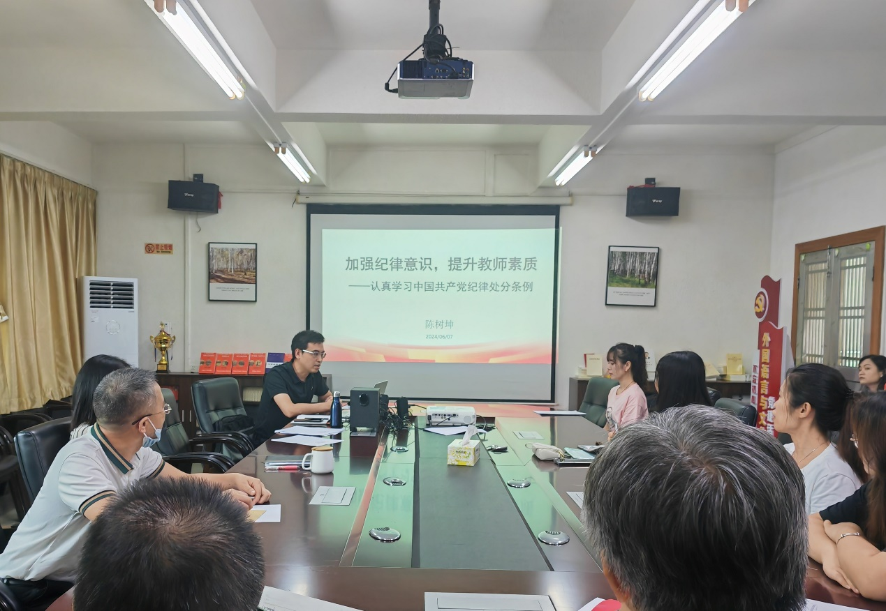 为深入学习贯彻习近平总书记关于党纪学习教育的重要讲话和重要指示精神,认真学习领会新修订的《中国共产党纪律处分条例》,按照学校党委和学院党委相关部署要求,6月7日上午,星空网彩票教工第二党支部围绕《中国共产党纪律处分条例》开展党支部书记讲党纪课的活动。