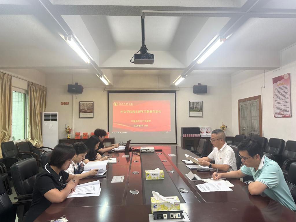 为深入贯彻《中共中央办公厅关于在全党开展深入贯彻中央八项规定精神学习教育的通知》,落实学校党委部署要求,5月19日下午,星空网彩票组织召开党支部书记学习贯彻中央八项规定精神学习教育交流会。会议由外文学院党委书记黄庆雄主持,副书记王丹、教工第一党支部书记温荣芬、教工第二党支部书记陈树坤、学生第一党支部书记孙嘉程、学生第二党支部书记邓粲士以及学院专职组织员邓伟琦出席了会议。