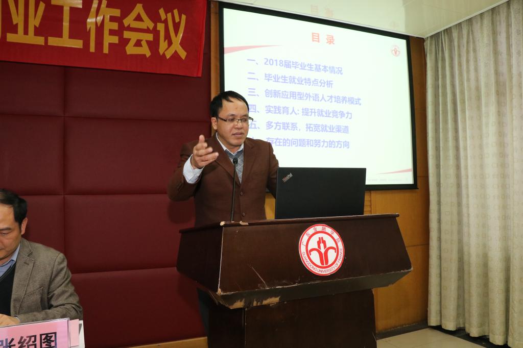 2018届毕业生就业工作已经基本完成,外文学院黄中习院长在会上表示:学院将认真总结经验,扬长避短,将好的经验和做法继续沿用到2019届学生就业工作当中,继续努力拓宽就业市场、强化就业指导的针对性和实效性,进一步提升我院毕业生的就业质量。