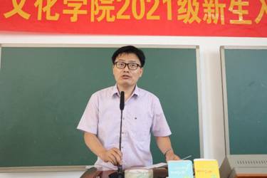 大会第三项议程教师代表刘传江博士发言。刘老师为新生带来了精彩生动的英文演讲,他提及外语学习初心使命,分享自己求学的经验教训,告诉同学们虽然专业学习会带来严峻考验,但外语专业人才前景看好,学校毕业生就业连年高企,考研率逐年提升,前途光明。最后,刘博士表达了对新生的美好祝愿,希望大家珍惜在外文学院读书深造的机会,发愤图强,勤勉进取,用四年的努力汗水换来大学时光的收获满满。