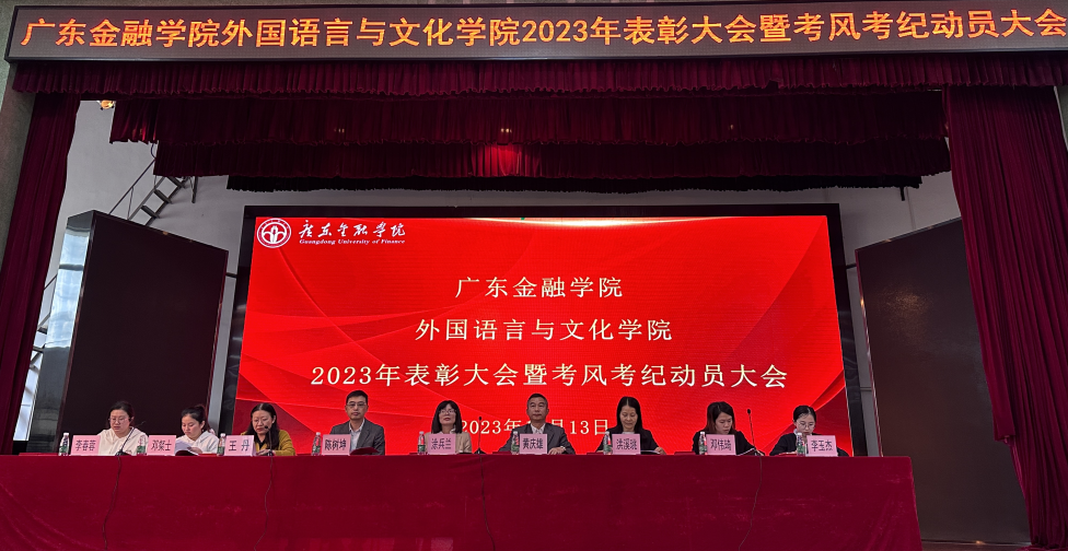 2023年,星空网彩票认真贯彻学校的育人方针,以学风建设为着力点,不断加大教学和学生管理工作力度的同时,在全院范围内深入开展争先创优活动,涌现出了一大批先进集体和优秀学生,为表彰先进,树立典型,深入推进学院学生管理工作,创建优良院风,外文学院于2023年12月13日中午在大礼堂召开“星空网彩票2023年表彰大会暨考风考纪动员大会”,学院党政领导班子、全体辅导员及全院学生出席了会议,会议由党委副书记王丹主持。