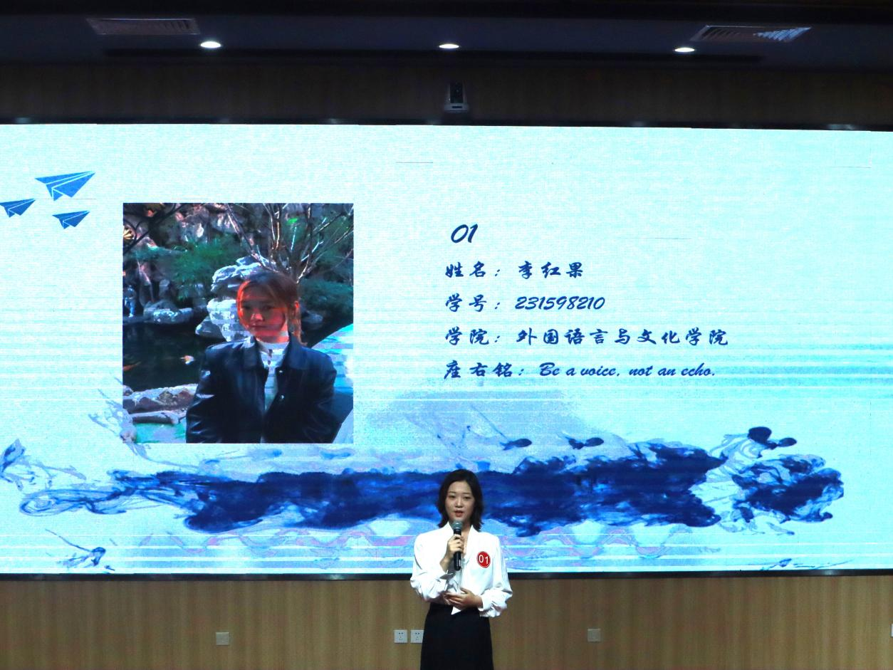 此次比赛经班级海选、初赛、决赛三个阶段。在初赛阶段,朱绯绯、翁佳炀、李鹏三位老师担任评委,他们秉持严谨态度,对选手表现进行严格筛选,并针对每位选手的演讲内容、发音、语调、肢体语言等多方面给予专业点评,助力选手提升专业能力,最终专业组和大英组各有8 位选手脱颖而出,成功跻身决赛。