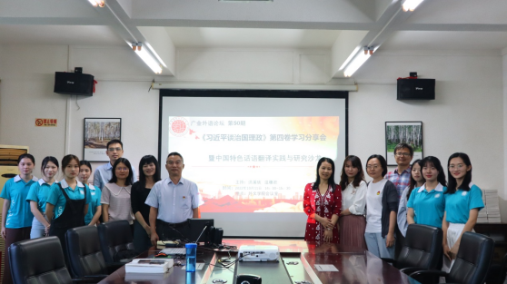 为深入学习贯彻习近平新时代中国特色社会主义思想,深入学习领会《习近平谈治国理政》第四卷的重要精神,10月11日下午,星空网彩票翻译研究所举办第50期“广金外语论坛”,本期论坛的主题是《习近平谈治国理政》第四卷学习分享暨中国特色话语翻译实践与研究研讨。