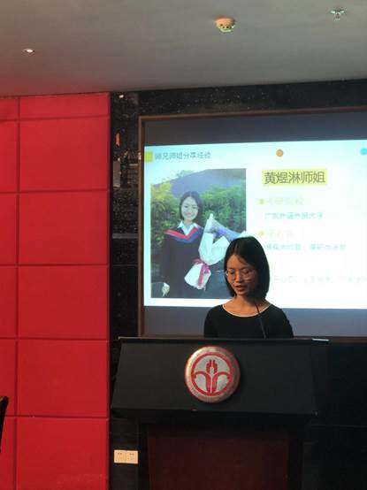 本次考研分享会在黄晓莉书记的致辞中拉开序幕,她提到18届的考研成果得益于学院良好的学风建设,希望在读学生向考研成功的师兄师姐们学习,坚持知识是硬实力,通过学习为自己的未来夯实基础。