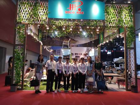 随后,黄晓莉一行来到2008届校友陈奕光的家具展台参观。陈奕光校友对母校领导的到来表示热烈欢迎。老师们饶有兴致地参观了校友企业的丰富产品和创意展示,亲切询问了陈奕光校友的企业发展情况,希望他抽空常回母校,给师弟师妹奉献分享创业就业的经验。