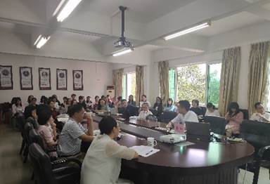 会后,黄晓莉书记为我院师生制定了参与共同研习课题的任务,并由翻译系主任陈树坤博士为学生们深入讲解相关课题内容。陈老师从以专业角度,引导他们深入学习《习近平谈治国理政》第三卷的丰富内涵和理论精华,希望师生们一起研习,学以致用,知行合一,进行相关翻译鉴赏研究,共同提高思想理论水平。