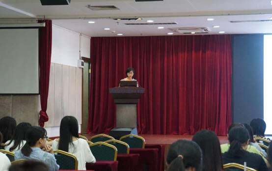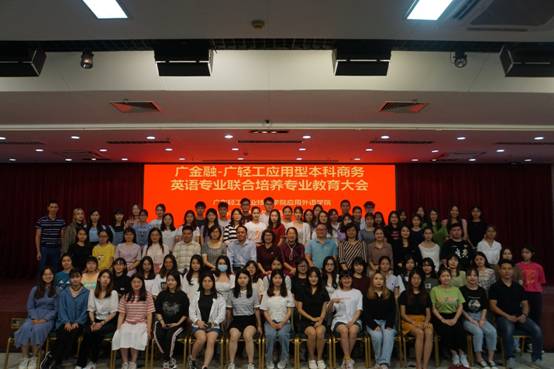孙智慧副院长详细解读了广金融-广轻工协同培养的商务英语专业本科班的人才培养方案,介绍了专业课程设置与教学要求,从外语专长、人文素养、国际视野、中国情怀和校本特色五个方面向同学们讲解了课程设置的目的,着重强调全体学生一定要学好外语专长,要逐步提高专业的新台阶。