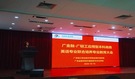 2020年10月16日,星空篮球体育外文学院-广东轻工职业技术学院应用型本科商务英语专业联合培养专业教育大会暨教学研讨会在广东轻工职业技术学院第二实训楼903室隆重举行。