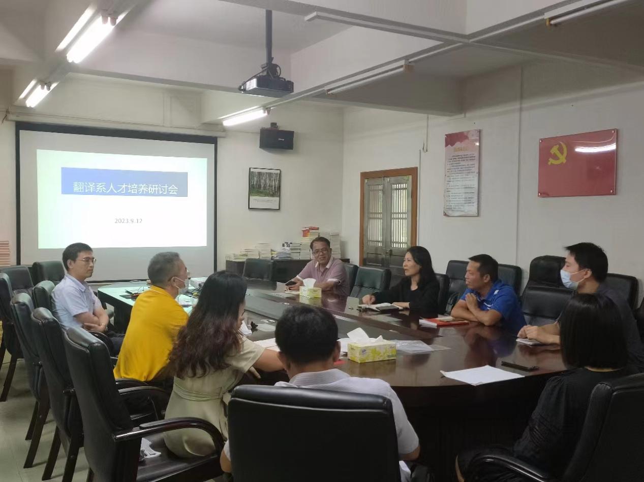 2023年9月12日星期二下午3:45分,翻译系人才培养研讨会如期拉开序幕。黄中习教授、陈树坤副院长、洪溪珧副院长和翻译系的一线教师出席了会议。