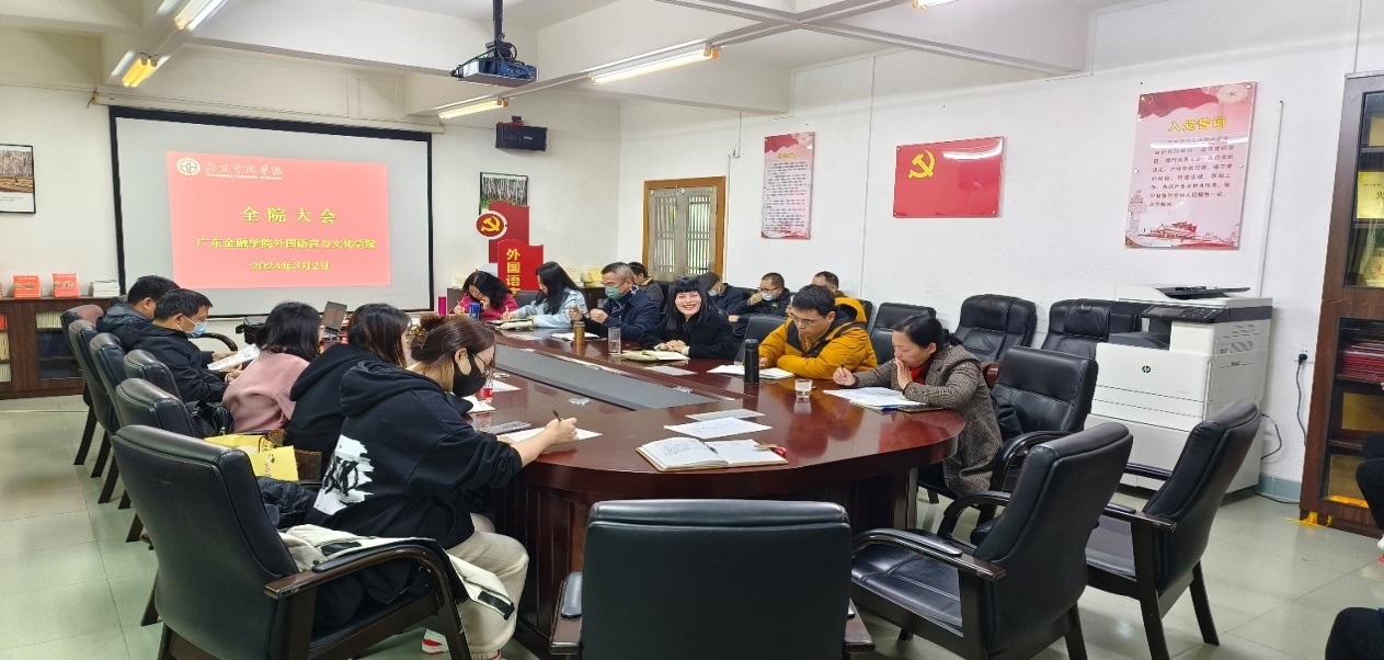 黄庆雄书记向全体教职工通报了2024年全省高质量发展大会以及全省教育工作会议的有关精神,同时指出学院要抓住申硕机遇,实现弯道超车,进一步缩小与兄弟院校的差距。涂兵兰院长详细通报了学院假期期间申硕工作进展、教材建设以及英语强基班的筹备等多个方面工作。涂兵兰院长向全体教工指出这些工作是外文学院提升学术层次、培养高层次人才的重要途径,特别是教材建设工作,要结合学院特色,打造一套系统的、高质量的教材体系。对于英语强基班的筹备,希望通过这样的班级,进一步强化学生英语基础能力,为他们的全面发展夯实基础。副院长陈树坤、甘容辉和洪溪珧分别就教学审核评估、集体备课工作规范、大学英语教学以及教师和学生的科研工作进行了新学期的安排和动员。同时也向全体教职员工明确了学院新学期工作开展的规划。
