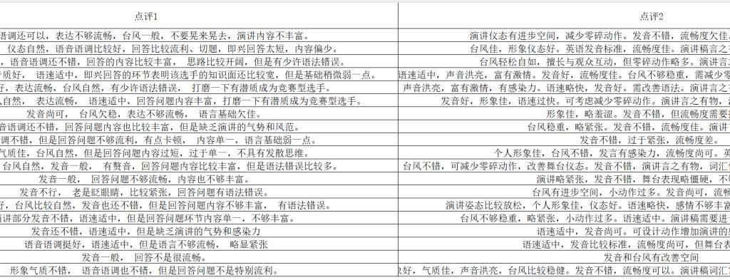 庄美英老师和魏渊渊老师担任本次大赛评委。两位评委就选手们的语音语调、语言表达和演讲技巧等方面进行了细致点评,为参赛者的进步提供了专业指导。