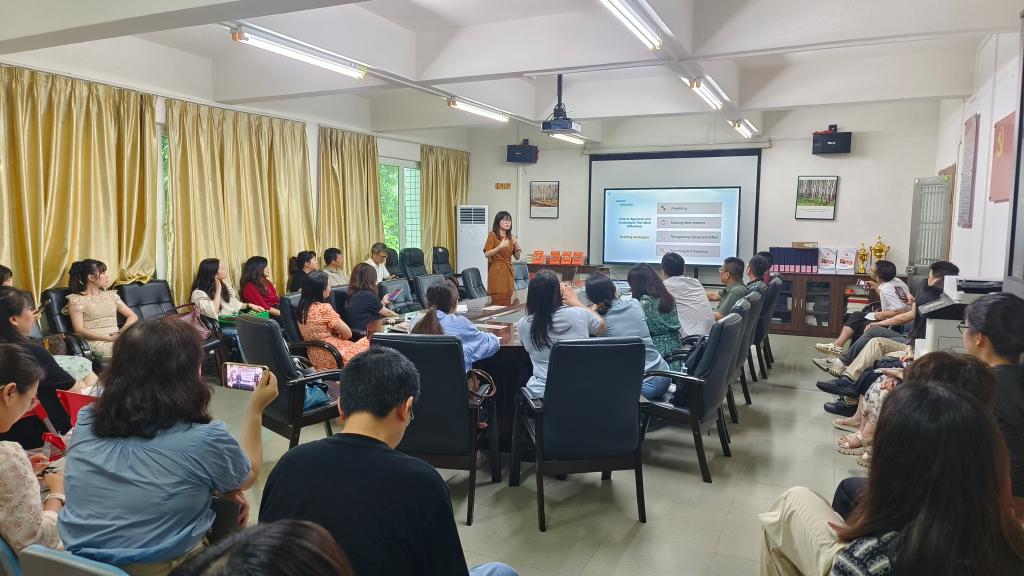 在学习个性化路径方面,借助智能推送、学习画像和动态任务调整,满足学生不同的学习需求与进度;教学评一体路径则借助系统评分、行为追踪与评教反馈系统,构建教、学、评数据闭环,以评估促进学习;协同生态路径更是打通线上线下,打造师 — 生 — AI 协同教学生态,通过 AI 助教、智能互动平台与人机协同写作,推动外语教学模式的全面创新。这场讲座为外文学院教师们提供了更加清晰的 AI 赋能外语教学改革方向,激发了教师们进一步探索与实践的热情。