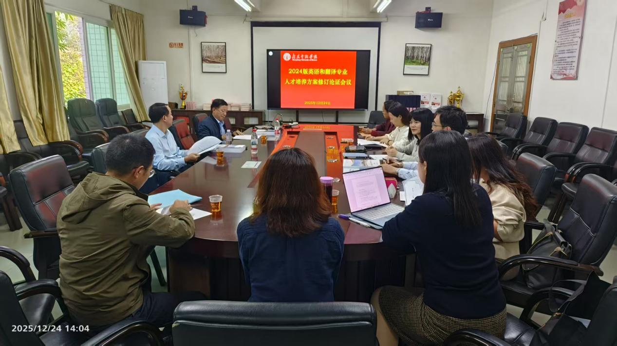 2025年12月22日下午,星空网彩票顺利召开“2024版本科英语与翻译专业人才培养方案修订论证会议”。会议特邀广东工业大学蔡荣寿教授、广州大学肖坤学教授担任论证专家。学院院长涂兵兰,副院长陈树坤、甘容辉、洪溪珧出席会议。英语系主任毕亚男、翻译系主任邓薇,以及教研室负责人杨贵章、王从遥等教师代表共同参与研讨。会议由陈树坤副院长主持。