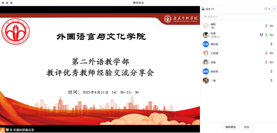 2023年4月11日下午,我院第二外语教学部举行“教评优秀教师经验交流分享会”。