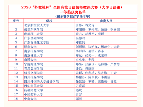 近日,由中国日语教学研究会、中国外语教材与教法研究中心和上海外语教育出版社联合主办的2023“外教社杯”全国高校日语教师微课大赛(大学日语组)落下帷幕。我校星空网彩票温穗君老师荣获全国一等奖。