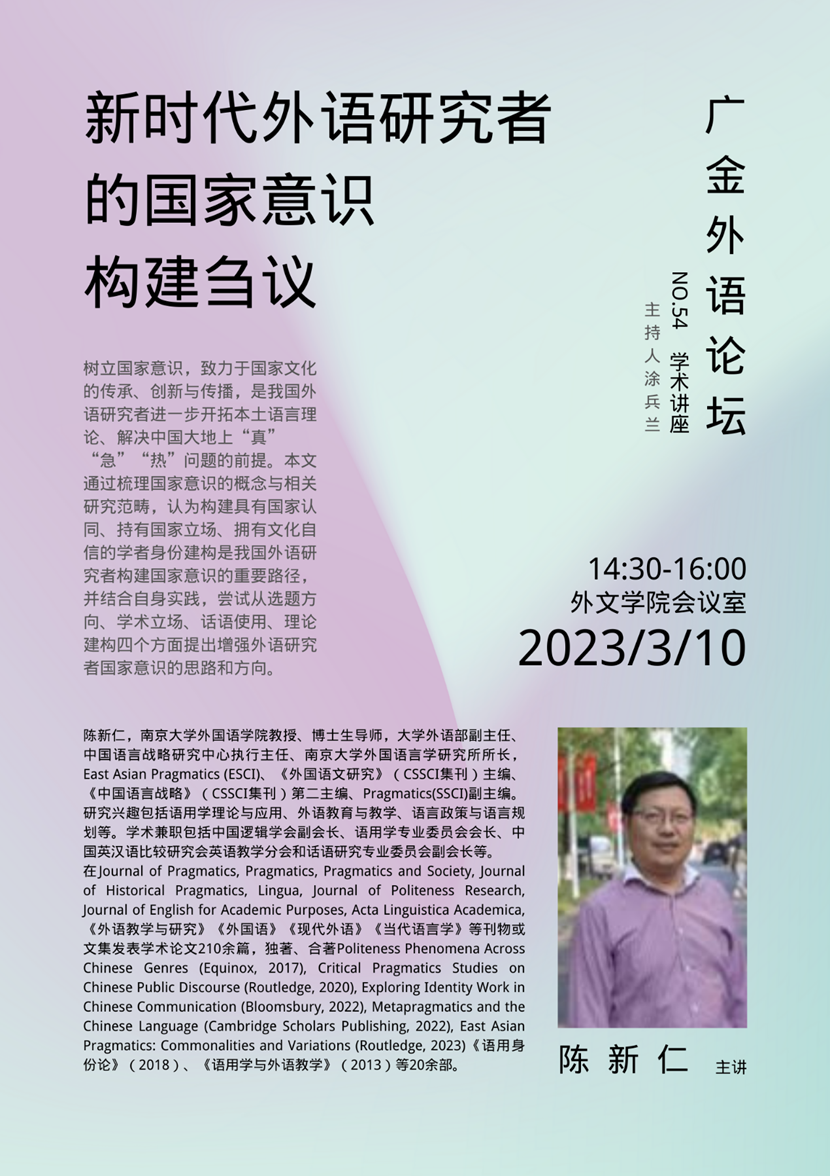 广金外语论坛54期:新时期外语工作者的国家意识构建刍议